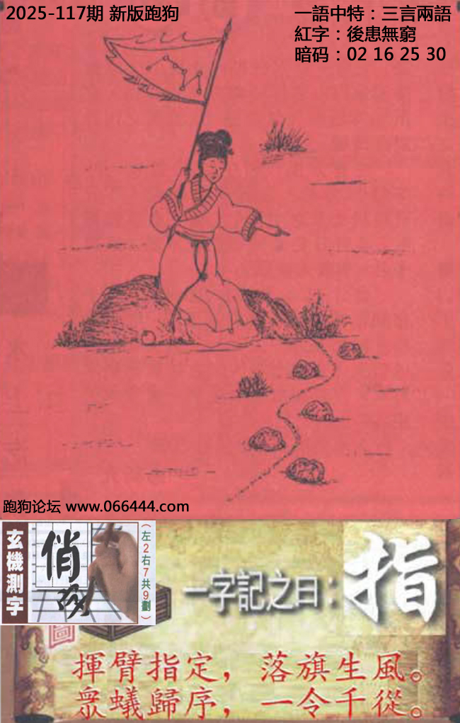 117期新版跑狗一字記之曰:【指】