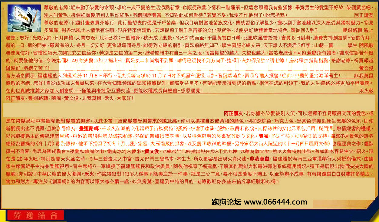 【3】.老總:您好!光陰似箭,日月如梭,人間忽晚,山河已秋;一個轉身,秋天成了風景,冬天如約而至,千里黃雲白日曛,北風吹雁雪紛紛。會員8日到期,續費支持創富網。新的冬月,新的一日,新的開始,願所有的人,冬月一切安好;更希望這個冬月,能得到老總的指引,莫愁前路無知己,學生佩服老總文采,天下誰人不識君?紅字:山虧一簧