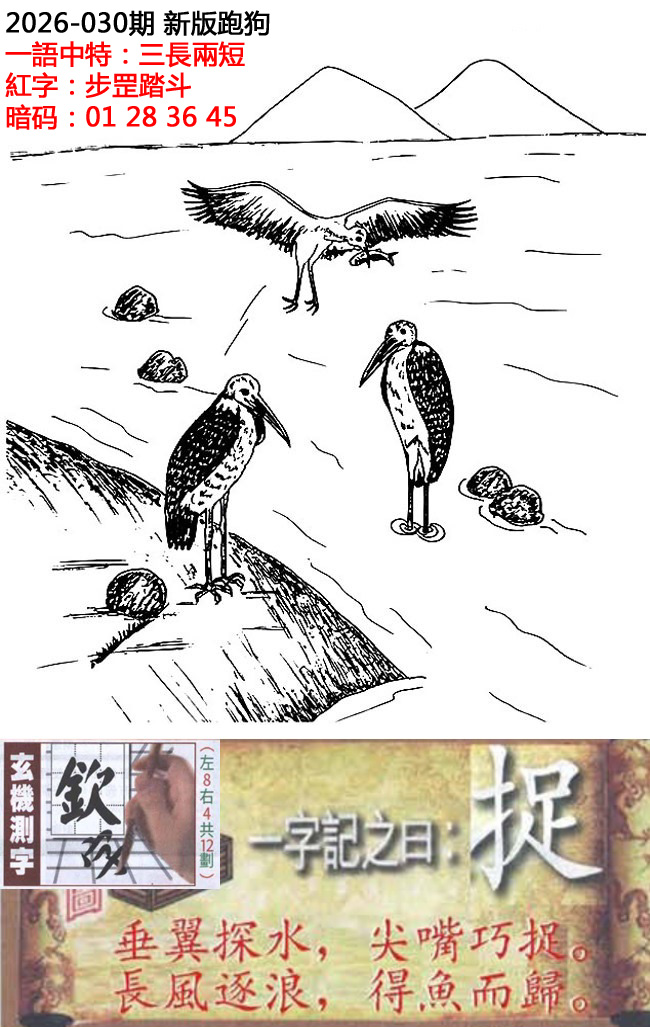 030期新版跑狗一字記之曰:【捉】