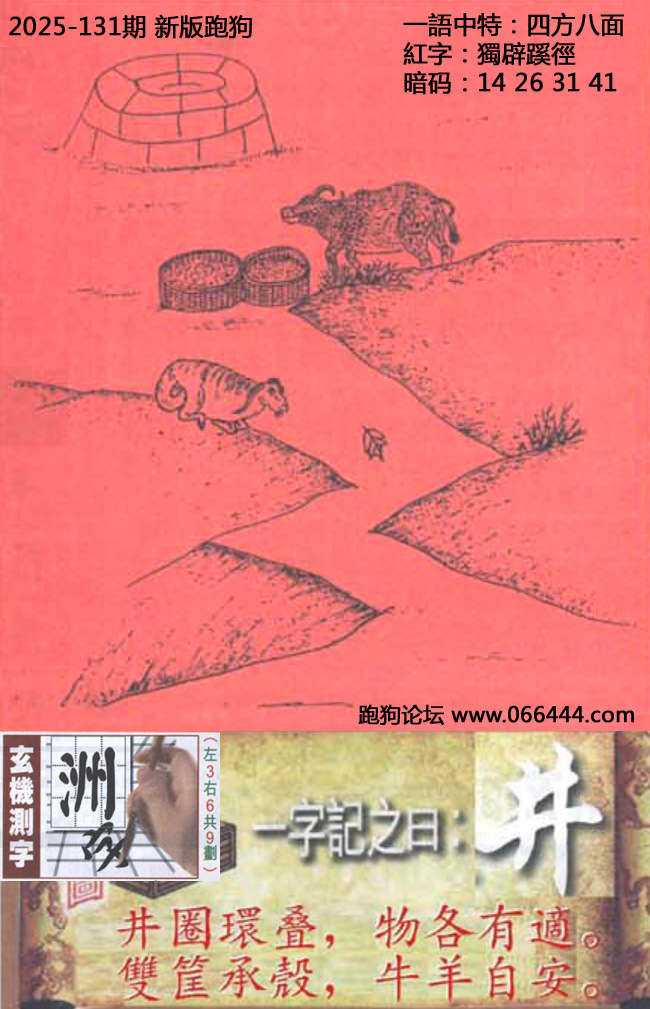 131期六合皇信箱红字【獨辟蹊徑】《暗码:14 26 31 41》开