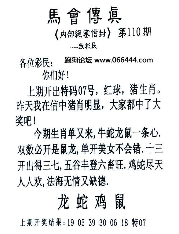 110期:必中九肖 |